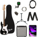 A perfect choice for beginners, the Squier® Debut Collection™ Precision Bass® Electric Bass Pack has everything you need to begin playing right out of the box. Designed by Fender® in California and an icon of rock & roll, the included Squier Precision Bass® features a slim “C”-shaped neck profile and a thin, lightweight body for a comfortable playing feel while a split single-coil pickup with volume and tone controls offer punchy P Bass® tones. Further details of this model include a 4-saddle hardtail bridge for precise intonation, open-gear tuning machines for smooth, accurate tuning action and durable chrome hardware. Delivering 15 watts of power, the Fender® Rumble® 15 amplifier is the perfect companion for jamming thanks to its aux input for playing along with songs or backing tracks, as well as a headphone jack for silent practice. The Squier Debut Collection Precision Bass Electric Bass Pack also includes a padded gig bag, strap, cable, picks, clip-on tuner, guitar stand, an extra set of strings, and a 3-month subscription to Fender Play® - the easiest way to learn to play bass.