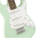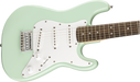 The Squier Mini Stratocaster® is the perfect companion for players seeking a reduced-size instrument with classic styling and familiar Fender® tone. Highlights include a thin and lightweight body, an easy-to-play "C"-shaped neck profile, a trio of Squier single-coil pickups with 5-way switching for sonic variety, and a hardtail bridge for solid tuning stability.