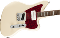 The Paranormal Limited Edition Offset Telecaster® SJ is a quintessential mashup of Fender features, combining key components of the iconic Tele® and Jazzmaster® for a truly otherworldly Squier® experience. This model is brought to life by a set of Fender Designed alnico single coil pickups in a Tele bridge and Jazzmaster neck configuration (SJ) with push/pull controls for series/parallel and phase switching in position 2. Further Tele details include a 3-saddle string-through-body bridge, as well as a Telecaster control plate and headstock shape. Additional Jazzmaster influence appears in the form of the contoured offset body, as well as the pearloid block inlays, binding and matching headstock that adorn the neck. Other callouts include a slim “C”-shape neck with a gloss finish for a slick yet confident feel, vintage-style tuning machines for accurate and reliable tuning, and chrome hardware that is sure to catch the spotlight.