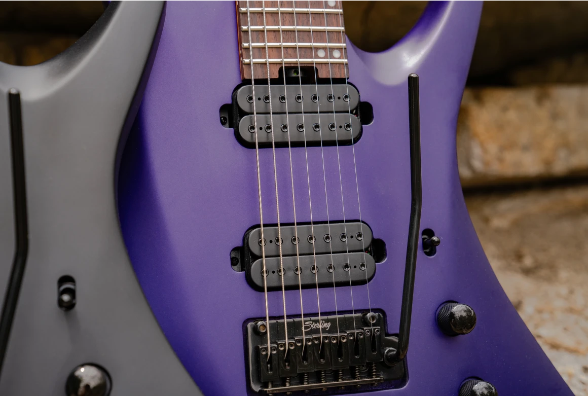 Developed in collaboration with Animals as Leaders founder Tosin Abasi, the Sterling by Music Man 7-string Kaizen brings the innovative design of the original Ernie Ball Music Man model to a fixed standard scale. Its lightweight, contoured body and roasted maple neck provide ergonomic comfort and smooth playability across all 24 frets. Outfitted with Steinberger Gearless Tuners, a floating tremolo, and uncovered ceramic humbuckers, it’s ultra-modern in both sound and style—complete with a color-matched headstock and two bold matte finishes.